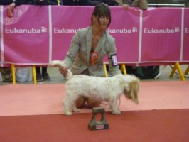 Mit 15 Monaten (Mindestalter für die "offene Klasse") schon die erste Anwartschaft für den Internationalen Ausstellungschampion gewonnen und "Bester der Rasse" geworden.