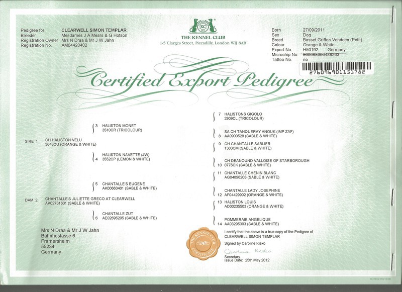 Noch ein Engländer. Aus Blutlinien, die auf die ersten in England eingeführten französischen PBGV zurückgehen und konsequent weiter gezüchtet wurden.