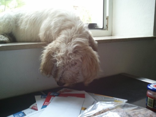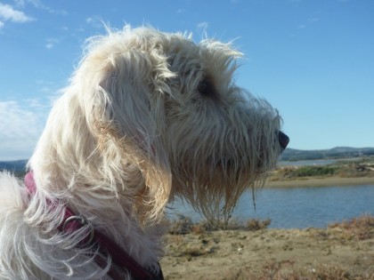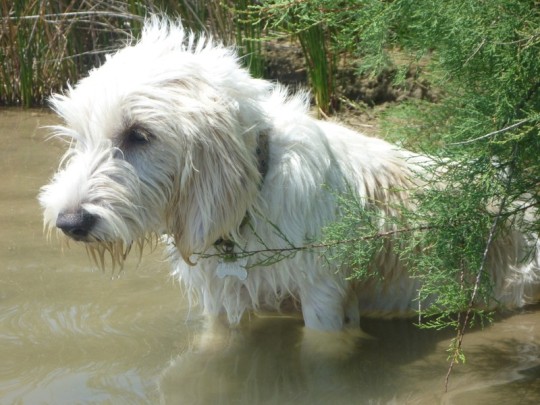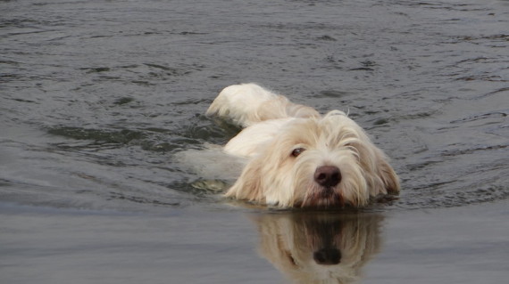 Sie schwimmt wie ein Fisch, "surft" auf Luftmatrazen im Wasser, spielt mit den Pferden, schläft beim Shoppen mit Frauchen gerne in Gängen wenn es mal wieder länger dauert, fängt Fliegen und kann so herrlich einfach nur sitzen und Freude haben.