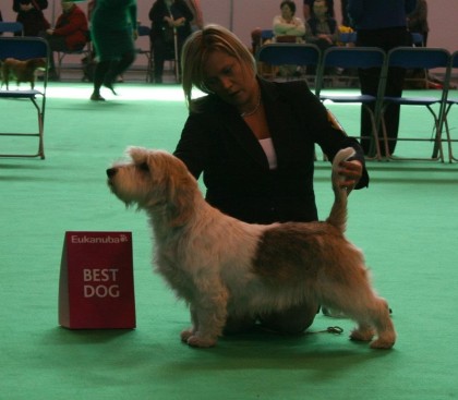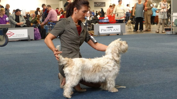 Wir testen hier eher die Nerven und den Charakter und bemühen uns, dem Hund den Spaß am Ausstellen unabhängig von den Ergebnissen zu erhalten und sogar zu steigern.
