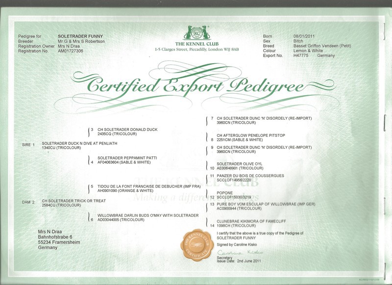Funny ist eine fast waschechte Engländerin. Die Mama ist Halbfranzösin, aus einer unserer favorisierten Zuchtlinien.
