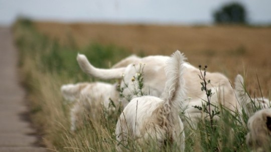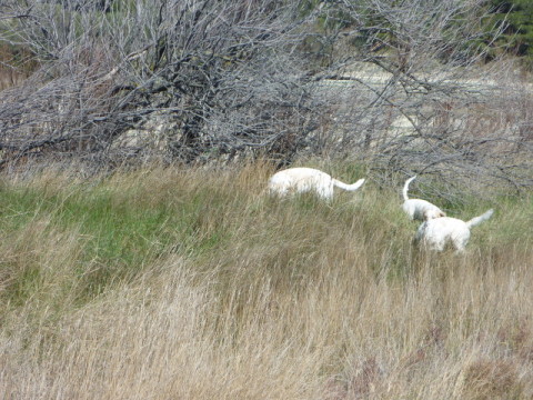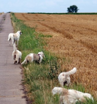 Unsere Hunde laufen alle frei und hören auf Zuruf, auch, wenn gerade ein Hase vor ihrer Stöbernase aufspringt - na, also - äh, manchmal doch nicht so ganz.