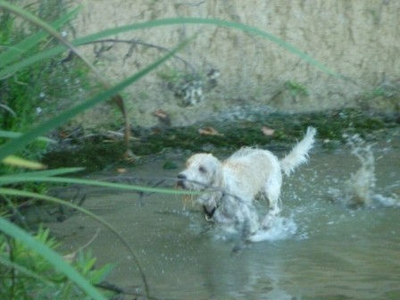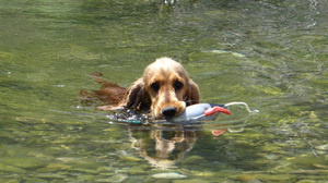 Nein, nein, nein Simon schaut zwar zu, aber er wird nie, nie, niemals nicht diesen sinnlosen Blödsinn mitmachen und irgend jemandem irgend etwas aus dem Wasser holen. Tja. so sind sie unterschiedlich, die Rassen. Arbeitseifer contra philosophische Lebensfreude- was gefällt Ihnen besser?
