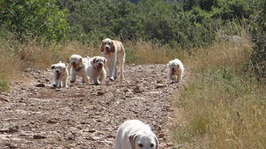 Die Maus hat wohl von Weitem zugeschaut und leise kichern müssen. 6 französiche Jagdhunde versuchen eine Maus zu fangen. Naja, vielleicht ja eine Art gruppendynamische Unternehmung, um die Teamarbeit zu verbessern.