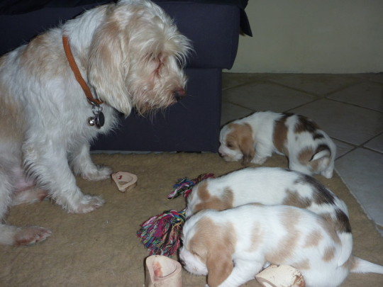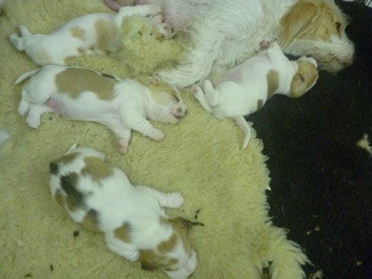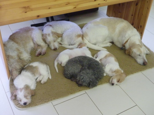 Die entspannte Seite der Hundezucht: die Welpen sind klein und goldig und ausgeglichen und entspannt.